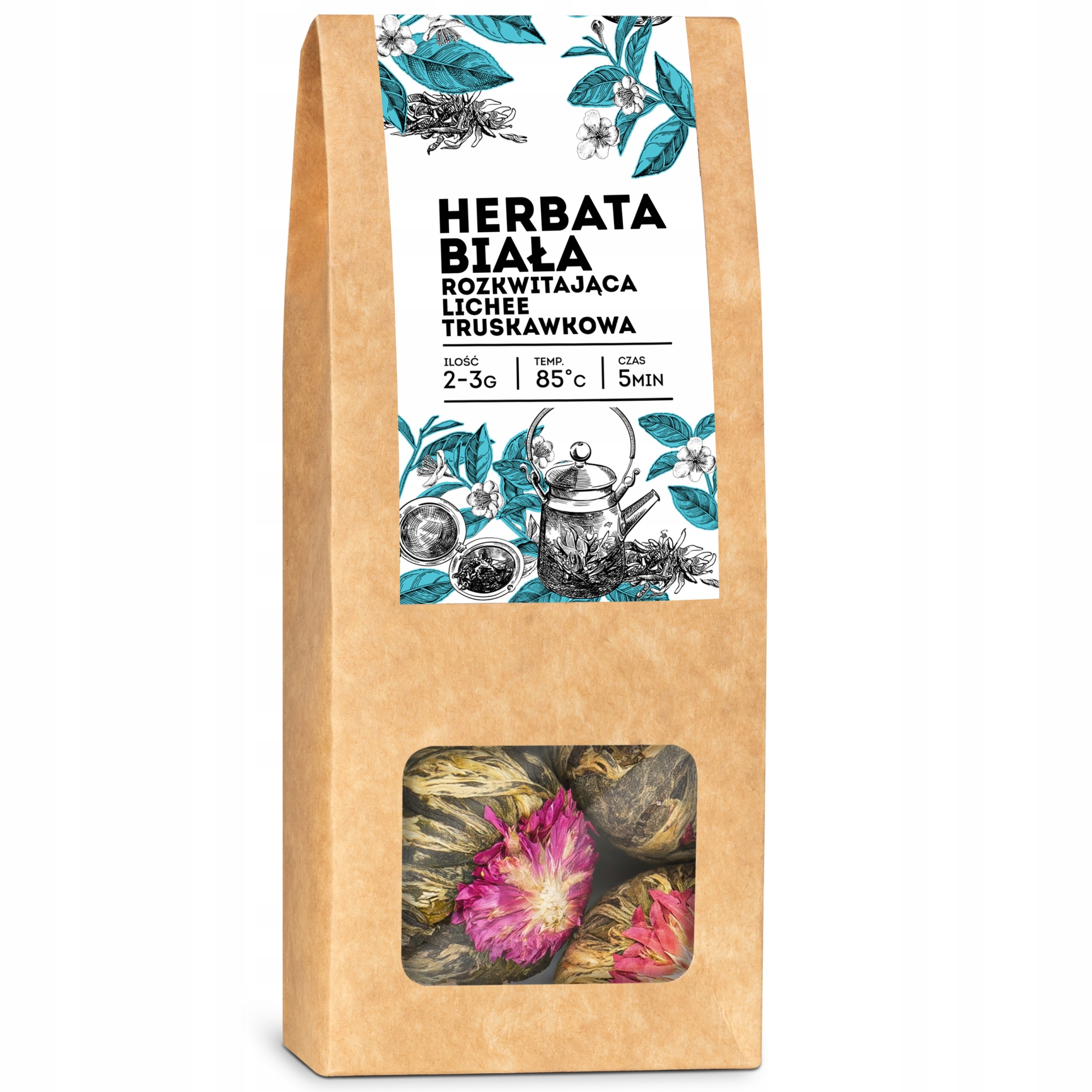 Herbata kwitnąca Lichee TRUSKAWKOWA 8 szt biała white tea lichi kwiat ball