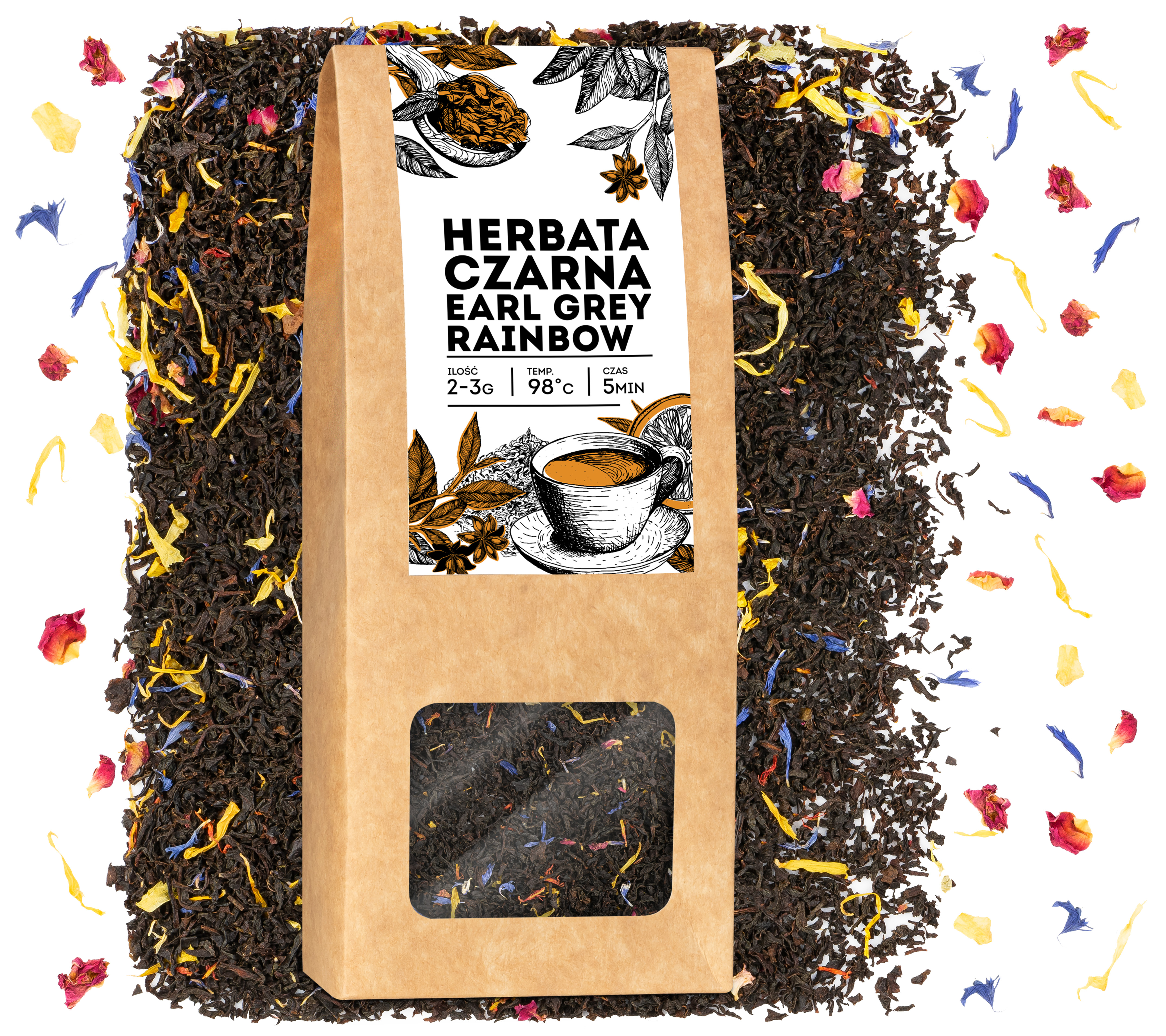 Herbata czarna liściasta EARL GREY Rainbow tea ceylon nagietek róża 50g