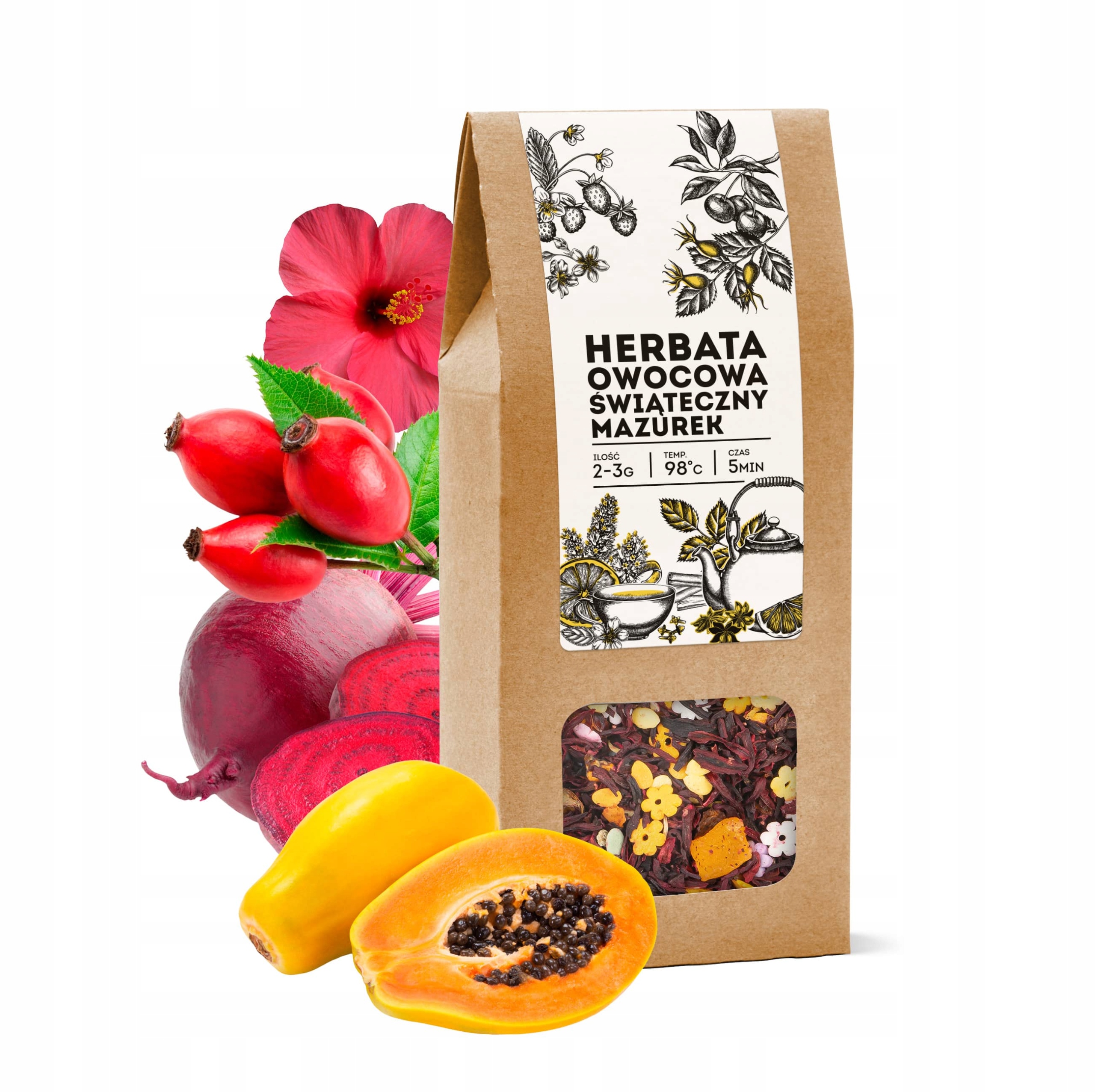 Herbata owocowa Świąteczny mazurek hibiskus na prezent dla babci mamy 50g