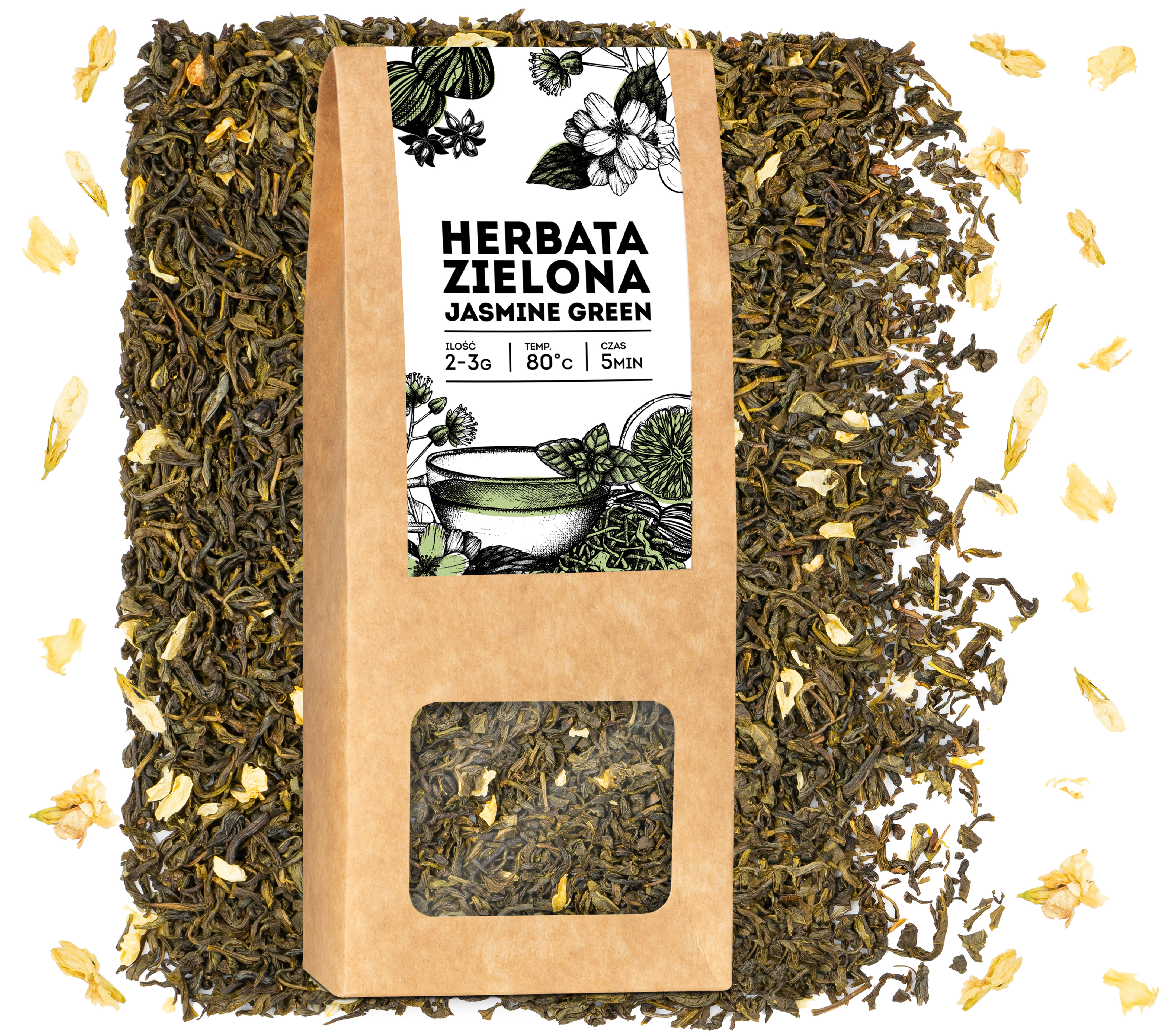 Skład: herbata zielona, kwiaty jaśminu
