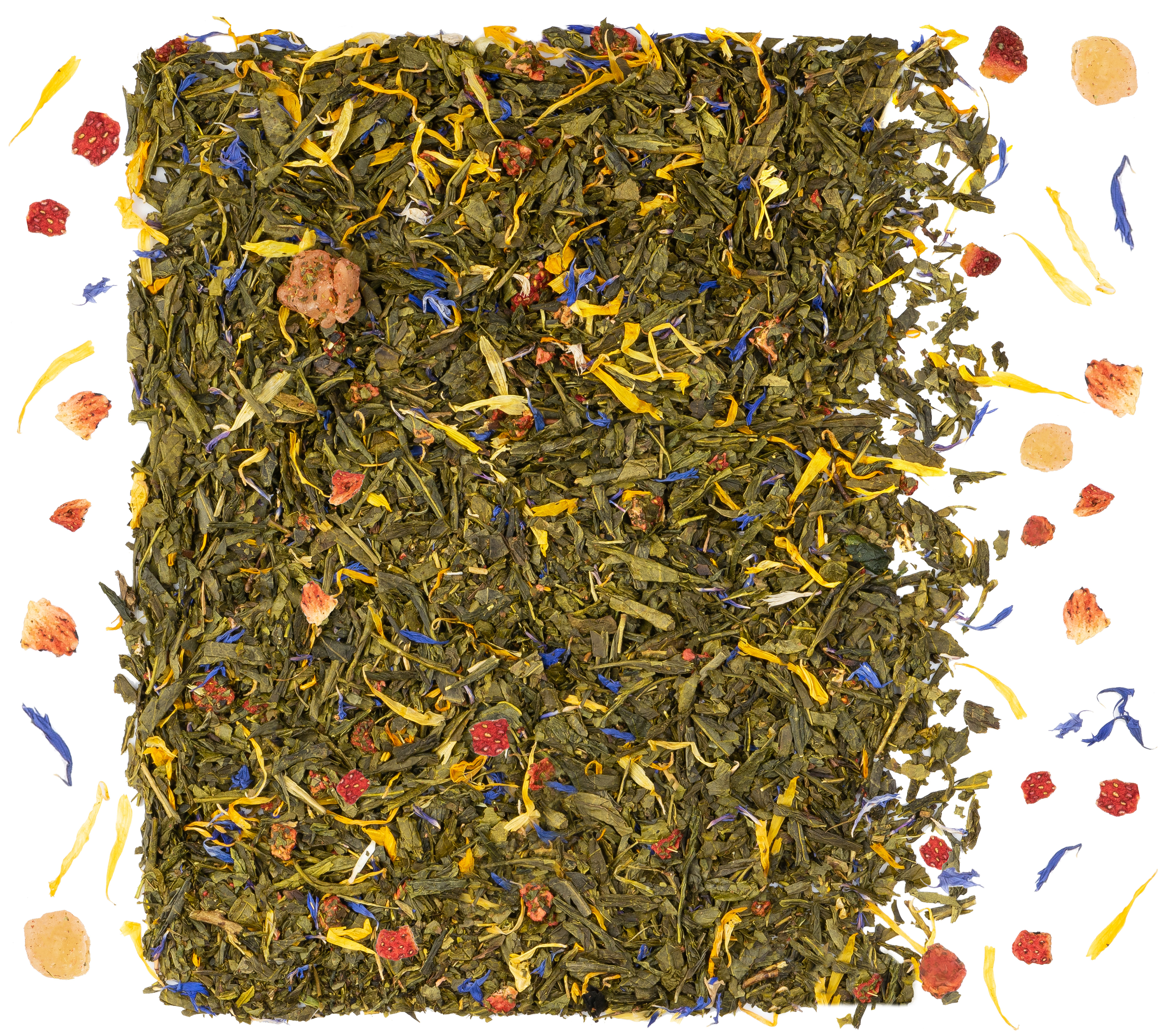 Składniki: Sencha, ananas kandyz. (ananas, cukier, substancja konserwująca SO2,), truskawka, nagietek, bławatek, aromat.