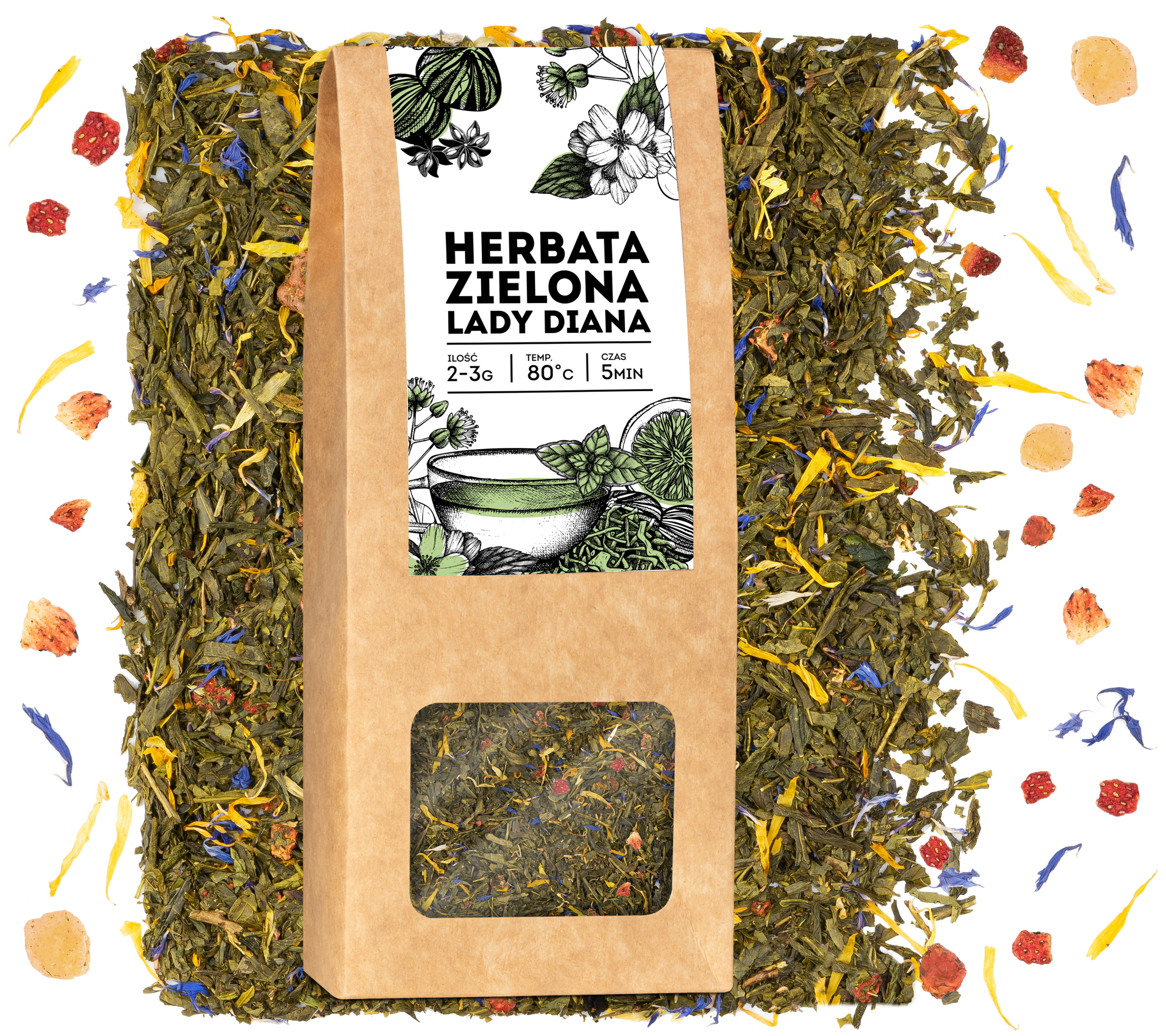 Herbata zielona LADY DIANA sencha chińska liściasta sypana truskawki tea 50g